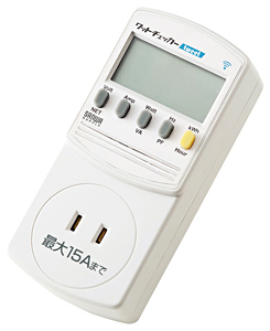 本体を壁のコンセントに差し込み、測定する機器の電源プラグを接続してボタンを押すことで、電圧(V)、電流(A)、有効電力(W)、皮相電力(VA)、周波数(Hz)、力率(PF)、積算電力量(kWh)、積算時間(H)の8種類のデータを測定できる。