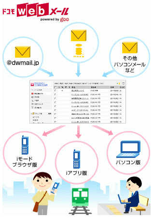 iモード・iアプリ・PCで使用できる「ドコモwebメール」は、iモードメールの自動保存や「かんたんログイン」などのiモード連携機能をもつウェブメールサービス。対応機種(FOMA)を所有しているiモード契約者は、申し込むと、「ドコモwebメール」の専用メールアドレスを無料で一つ取得し、PCでも携帯電話でも、ブラウザ上でメールの閲覧・送受信をすることができる。料金は無料だが、申し込みはiモードから。また、6か月間、サービスに一度もログインしない状態が続くと利用できなくなり、保存データ・設定情報はすべて削除される。