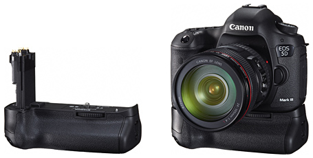 専用アクセサリとして、カメラ本体同様、防塵・防滴構造のマグネシウム合金製「バッテリーグリップ BG-E11」を4月下旬に発売する。ホールド性を追求し、長時間撮影でも疲れにくい形状で、縦位置での撮影でも測距点を直感的に選べるマルチコントローラーや、操作ボタンカスタマイズ機能に対応する「M-Fn(マルチファンクション)」ボタンを搭載。電源は、「バッテリーパック LP-E6」×2個、または単3形乾電池×6本。税別価格は2万9000円。