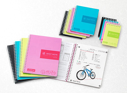 「ショットノート」は、スマートフォンと連携する次世代ノート。無料の専用アプリ「SHOT NOTE」(iOS版・Android版)でノートに書いた手書きメモを撮影すると、デジタルメモとして活用できる。取り込んだノートは、メール送付やEvernote、Twitterへの投稿、Dropboxへの保存も可能。2011年2月の発売以来、シリーズ累計販売冊数は100万冊を突破した。