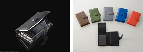 ミニサイズの手帳をイメージしたデザインで、iPhoneを入れたままでも操作できる。キズや衝撃からiPhoneをガードする革製ジャケットと、幅59mmまでのメモやカードを収められるスペースを一体化した。