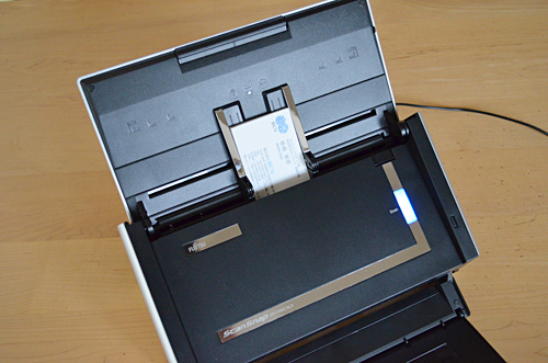 名刺も、書類などと同様ADFにセットしてスキャンする