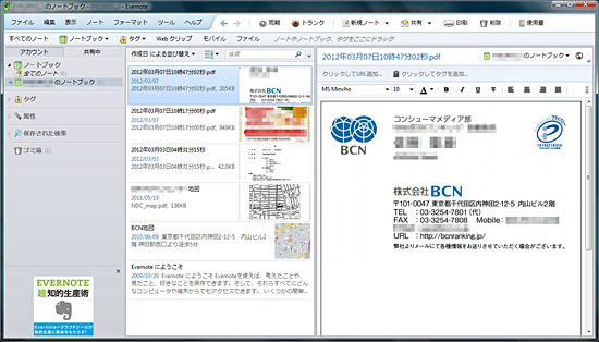 このように「Evernote」を上手く活用すれば、重い資料をカバンに詰め込んで持ち歩く必要はなくなる。スマートフォンさえあれば、どこからでも「Evernote」の書類や資料が確認でき、メール添付で送信したり、出力したりすることもできる。仕事の効率が一気にアップすること、間違いなしだ。