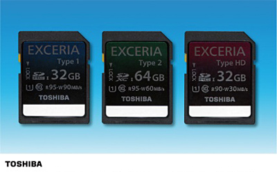 東芝は、SDメモリカード規格Ver.3.0の高速インターフェース規格「UHS-I」対応のSDHCメモリカード3シリーズ9製品を、4月下旬から順次発売する。高速インターフェース規格「UHS-I」対応のSDXC/SDHCメモリカードを新ブランド「EXCERIATM(エクセリア)」として展開し、ラベルデザインを一新する。
