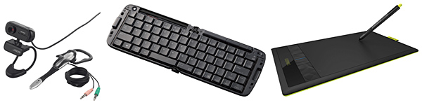 左から、バッファローコクヨサプライ 200万画素Webカメラ ヘッドセット付き(5名様)、エレコム Android対応Bluetooth折りたたみキーボード(1名様)、ワコム Bamboo Fun CTH-470/K1(1名様)