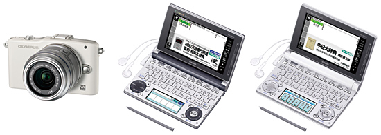 左から、オリンパス OLYMPUS PEN mini E-PM1 レンズキット(ホワイト)(1名様)、カシオ エクスワード XD-D8500GM(3名様)、エクスワード XD-D7300WE(2名様)