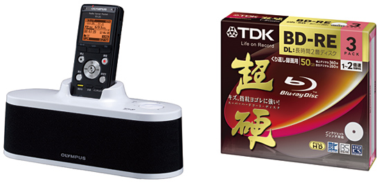 左から、オリンパスイメージング ラジオサーバーポケット PJ-25(1名様)、イメーション くり返し録画用ブルーレイディスクBD-RE 超硬 3枚パック(5名様)