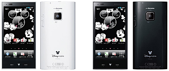 Disney Mobile on docomo P-05D(左から、PURE WHITE、PURE BLACK)