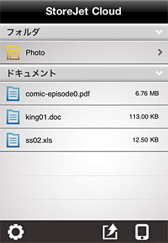 「StoreJet Cloud」に保存したファイルを一覧表示