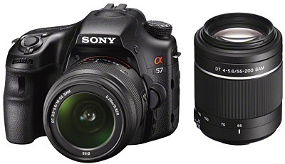 実勢価格は、ボディが8万円前後、ズームレンズ「SAL1855」(DT 18-55mm F3.5-5.6 SAM)とのキットモデル「SLT-A57K」が8万5000円前後、「SAL55200-2」(DT 55-200mm F4-5.6 SAM)も加えたダブルズームレンズキット「SLT-A57Y」が10万5000円前後の見込み。
