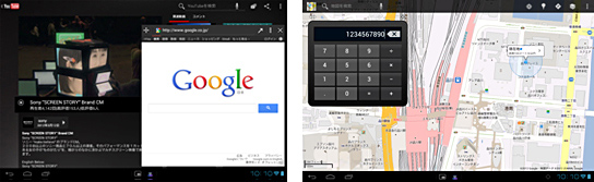 「スモールアプリ」機能の使用イメージ(左から、「ブラウザ」起動時、「計算機」起動時)