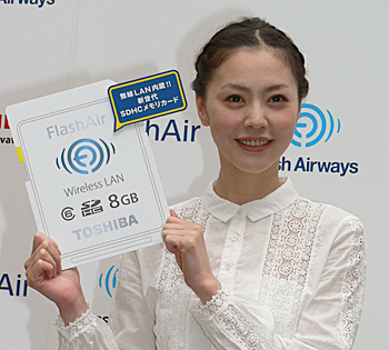 「FlashAir」は、ワイヤレスデータ転送機能を備えた容量8GBのSDHCメモリカード。IEEE802.11b/g/nの無線LAN機能を内蔵し、メモリカード内のデータをスマートフォンやタブレット、PCなどにワイヤレスで転送できる。外出先で撮影した写真をその場で手軽に複数の人と共有したり、ブログやSNSなどに投稿したりするのに便利だ。3月10日に発売し、店頭では6980円前後で販売している。