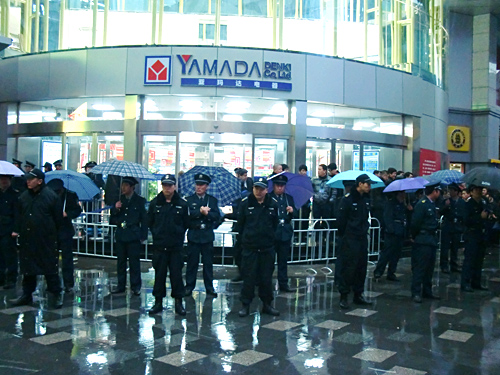 現地の業界関係者の話によると、河村たかし名古屋市長の発言の影響で、南京で開催予定だった「ジャパンウィーク」など、日本関連のイベントが中止されたが、日系店舗の売り上げなどにはほとんど影響はなかったという。南京市内はいたって平穏。新幹線の駅につながる地下鉄南京南駅では、BGMに「北国の春」が流れていたほどで、見たところ反日運動などが起こっている様子はなかった。しかし、ヤマダ電機南京店のオープンにあたっては、入り口前には開店前から約50名の警備員が入り口付近を固め、店内各フロアにも4~5名の警備員が配置されていた。また、これまで中国の店舗開店時に恒例になっていたオープニングセレモニーもなかった。(BCN・道越一郎)