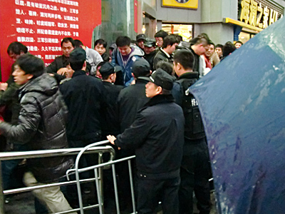 入店しようとする客で一時混乱状態に。10分ほどで平常に戻った