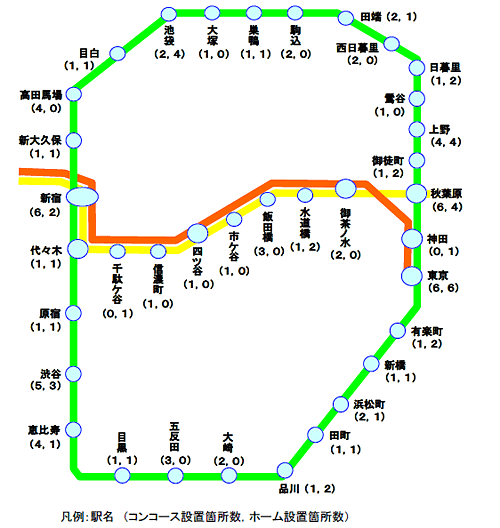 KDDIとソフトバンクモバイルは、3月27日、それぞれ自社の契約者向けに提供している公衆無線LANサービス「au Wi-Fi SPOT」「ソフトバンクWi-Fiスポット」について、東日本旅客鉄道(JR東日本)が運営するJR山手線内(JR山手線、JR中央線の一部区間)の全36駅で提供すると発表した。