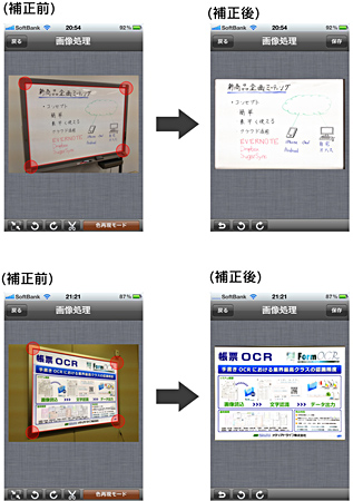 「ScanClip」(iPhone版)による画像のトリミングと色彩補正