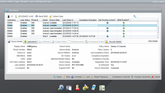 「McAfee Enterprise Mobility Management 10.0」の管理者用画面