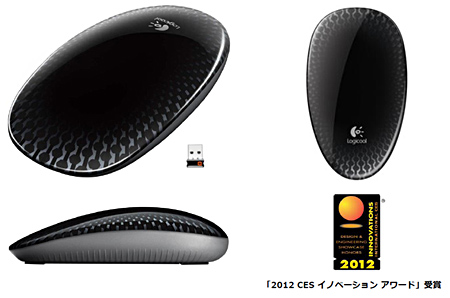 1月にラスベガスで開催された「2012 International CES」で、「2012 CES イノベーション アワード」を受賞した継ぎ目のないデザインを採用。左右対称なので、専用ソフト「SetPoint」を使って左右クリックを入れ替えれば、利き手に関係なく使える。