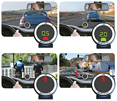 オランダのMobileyeが開発した「EyeQ2画像処理半導体」を搭載した車両向け衝突防止補助システム。映像を取り込むカメラユニット、警報を表示するディスプレイユニット、クルマのCAN(Controller Area Network)データなどを取り込んでシステム全体の制御を行うコントロールユニットで構成する。取り込んだ映像から、人、クルマ、二輪車、車線を認識し、車速などの運転情報から計算を行い、衝突や車線逸脱の危険を察知すると警報でドライバーに知らせる。