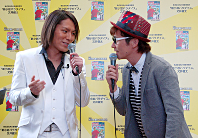 角川春樹事務所は、4月12日、又井健太『新小岩パラダイス』の舞台となった東京・新小岩で、地元商店街とともに町おこしキャンペーンを実施した。キャンペーンではお笑い芸人の藤森慎吾さんと狩野英孝さんを招いて書籍売り上げ対決を実施。対決の様子をUstreamで中継した。