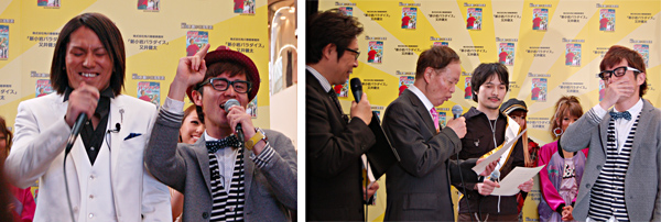 売上げ対決は15分間。ルミエール商店街入口の特設ステージ前で手応えを聞かれた狩野さんは、「けっこうお客さんが来ましたよ。回転が速くていい感じ。新小岩で働いている人が仕事を放棄してまて買いに来てくれた」と自信満々に語った。