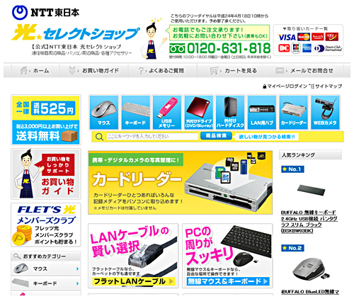 NTT東日本、PC周辺機器などを取り扱う公式販売サイト「光セレクトショップ」