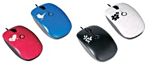 USB接続の有線オプティカルマウス「MUS-ANUKT01」は、分解能を800/1200/1600dpiに切り替えることができる。カラーはレッドハート、ブルーバード、ホワイトフラワー、ブラックリーフの4色。対応OSは、Windows 7/Vista/XP。サイズは幅56.0×高さ33.0×奥行き92.0mmで、重さは75g。実勢価格は1300円前後の見込み。