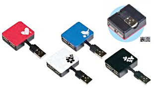 4ポートUSBハブ「UH-AN2284」は、USBコネクタを本体裏側に収納でき、他のUSBコネクタと干渉しにくいスリムコネクタを採用する。電源はUSBバスパワー。カラーは、レッドハート、ブルーバード、ホワイトフラワー、ブラックリーフの4色。対応OSは、Windows 7/Vista/XP/Me/2000/98SE、Mac OS X。サイズは幅42.0×高さ15.5×奥行き37.0mmで、重さは22g。実勢価格は1000円前後の見込み。