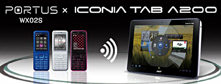 ウィルコム、PHS「PORTUS WX02S」とタブレット端末「ICONIA TAB A200」のセット、キャンペーンで実質1万2000円