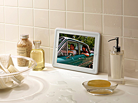 防水保護等級IPX5に準拠し、防水性能を備えたiPad用ケース。バスルームで動画視聴や、キッチンでのレシピ検索などに便利だ。iPad/iPhoneでテレビが視聴できるワイヤレスチューナー「デジタルTVチューナー」と組み合わせれば、水回りでもテレビ視聴ができる。