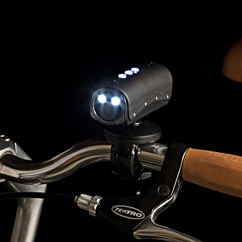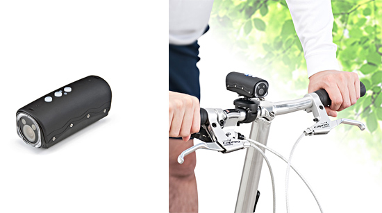 500万画素のCMOSセンサを搭載し、画角120°の広角レンズを採用。直径25mmまでのハンドルに対応する自転車取り付けアタッチメントで、自転車で走行中の風景を迫力ある映像で録画できる。また、動画撮影のほかに、静止画の撮影や録音機能を備える。記録時のファイル形式は、動画がAVI、音声がWAV、静止画はJPEG。