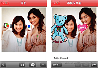 撮った写真は、ワンタッチでTwitterに投稿することもできる。対応機種は、iPhone 4S/4、iPad 2、第4世代iPod touch、対応OSは、iOS 5.1以降。