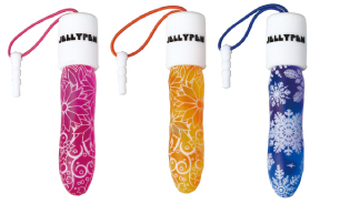 ストラップ部分をイヤフォンジャックに差し込んで、スマートフォンやタブレット端末と一緒に持ち運ぶことができる。サイズは15×70mmで、重さは約11g。カラーはピンク、オレンジ、ブルーの3色。