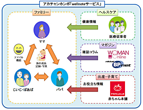 ウェルスタイルは、家族だけで情報をシェアするファミリー・ネットワーク・サービス(FNS)「wellnote」の「アカチャンホンポ」版として、「アカチャンホンポwellnoteサービス」の提供を開始した。