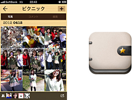 iPhoneアプリ「はてなアルバム」のアルバム画面(左)とアイコン