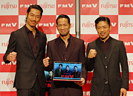発表会後半には、新イメージキャラクターのEXILEのメンバー、AKIRAさん、HIROさん、MATSUさんが登場。ウルトラブック「LIFEBOOK UHシリーズ」を見たAKIRAさんは、「デザインがかっこいい。特に薄さがいい。僕はせっかちな性格なので、起動が速いのはとてもうれしい」とコメントした。