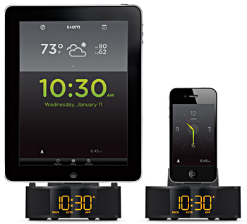 iPhone、iPad、iPod Touchを取りつけて使用するアラームドック。iPhoneなどに入れている音楽をアラームメロディとして流すことができる。アラームの設定はiOS向け無料アプリ「timecommand」を使用する。対応OSはiOS 4.2以降。