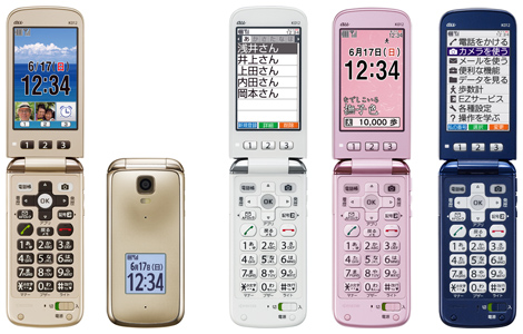 「簡単ケータイ K012」は、従来の便利な機能に加え、雑踏の中でも聞きやすい「スマートソニックレシーバー」をはじめ、音の聞き取りやすさに配慮した機能を新たに搭載。有効約511万画素のCMOSカメラ、大きくて見やすい3.0インチのIPS液晶ディスプレイを搭載し、IPX5/7等級の防水・IP5X等級の防塵性能を備える。カラーはゴールド、ホワイト、ピンク、ネイビーの4色。発売時期は5月下旬以降の予定。