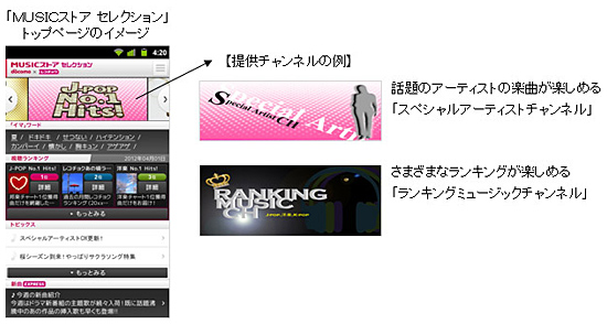 「MUSICストア セレクション Powered by レコチョク」は、月額315円で聞き放題の音楽ストリーミングサービス。アーティストごとの「スペシャルアーティストチャンネル」や、さまざまなランキングが楽しめる「ランキングミュージックチャンネル」など、8つのチャンネルを用意する。各チャンネル内に複数の番組を設け、50番組で毎月2000曲以上を配信する。