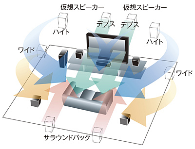 5.1chスピーカーのままで仮想11.1chの音場を再現する独自の仮想音場技術「バーチャル3Dサウンド」を搭載。3D対応テレビと接続することで、映像だけでなく立体感のある音声を再現する。リモコンの「バーチャル3Dサウンド」ボタンを押すだけの簡単操作で、映像に合わせて3段階の音場設定ができる。