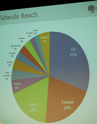 エバーノートのユーザーは、現在、世界で3000万人以上。うち日本は18%で、世界第3位の市場だ。今年末までに、世界のユーザー数は5000万人に達する見込み。中国では急激にユーザー数が伸びており、「今年か来年には、日本のユーザー数を抜く」(リービンCEO)という。