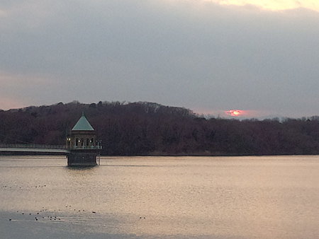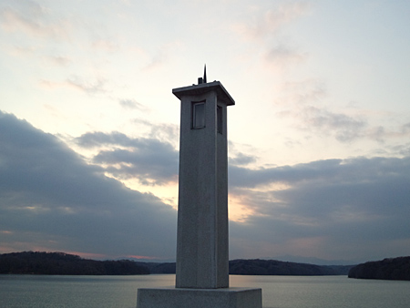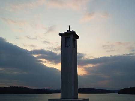 夕空をバックにした石塔。通常の撮影では空の明るさに影響されて石塔は暗くなってしまうが、露出補正とAEロックをうまく使えば、夕空の感じを残しつつ、石塔も明るく写すことができる。「P-02D」は、露出の異なる3枚の画像を合成するHDR撮影機能を搭載しているので、そちらを使っても白トビ・黒ツブレを防ぐことができる。