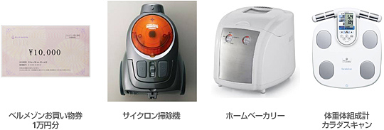 「のりかえギフト」は、「ベルメゾンお買い物券」1万円分、サイクロン掃除機、ホームベーカリー、体重体組成計など豊富なラインアップから好きな商品が選べる。