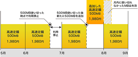 SIMパッケージをAmazon.co.jpで購入し、受付専用サイトでサービスを申し込むと利用できる。使用を開始した日を起点日として、毎月500MBまで使うことができ、1か月(料金月)以内に500MBに達すると、料金月の末日まで利用停止になる。1か月以内に使い切った場合は、専用ページ「My b-mobile」から1980円で500MBを追加購入すると、継続して使用できる。なお、追加分を含め、料金月内に使い切れなかったデータ量は失効し、翌料金月には繰り越されない。