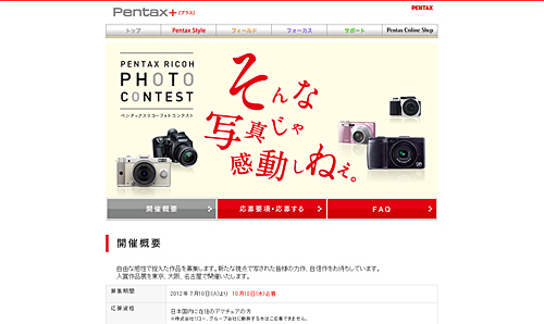 「ペンタックスリコーフォトコンテスト」特設サイトの画面イメージ