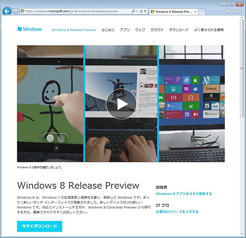 マイクロソフト、「Windows 8 Release Preview」を提供