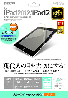 眼精疲労やドライアイを引き起こしたり、睡眠を促すメラトニンの分泌を抑制して体内時計がずれる症状を起こしたりする恐れがあるとされるブルーライトを大幅にカットするiPad用の液晶保護フィルム。対応機種は、iPad(第3世代)/iPad 2。