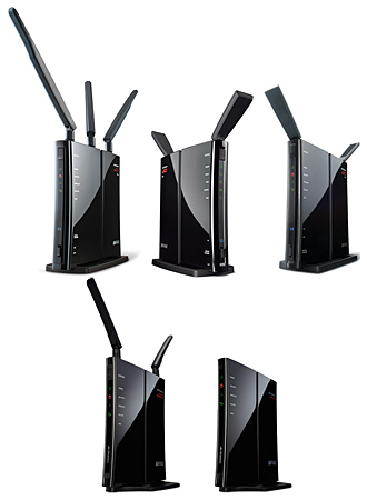 「WZR-450HP」(上段左)と「WZR-600DHP」、「WZR-300HP」、「WHR-300HP」(下段左)と、「WHR-300」