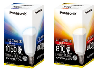 光源の直下部を中心に照らす下方向タイプの「EVERLEDS LED電球 11.0W」は、昼光色タイプの「LDA11DHW」、電球色タイプの「LDA11LHW」の二つを発売する。