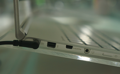 USB3.0の倍、最大10Gbpsの転送速度をもつThunderbolt端子を備える